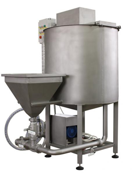 Mieszalnik solanki przeznaczony jest do wytwarzania jednorodnych roztworów solanki używanej w procesach przetwórstwa mięsnego. Mieszalnik posiada podwójny system mieszania składników roztworu przez mieszadło mechaniczne oraz mieszadło inżektorowe. Podwójny system mieszania gwarantuje szybkie uzyskanie jednorodnego roztworu solanki. Zastosowanie wydajnej pompy odśrodkowej wymuszającej obieg cieczy umożliwia inżektorowi skuteczne zasysanie substancji suchej do cieczy znajdującej się w zbiorniku.