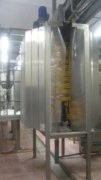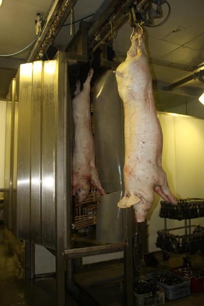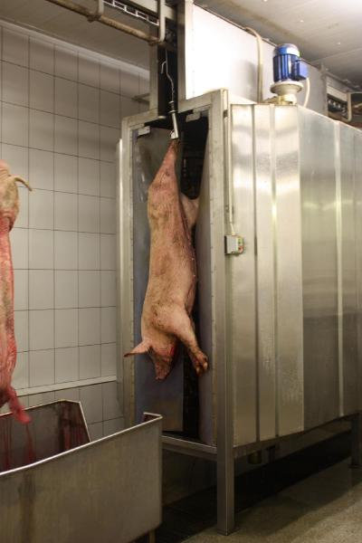 Myjka biczowa jest urządzeniem przeznaczonym do mycia tusz wieprzowych przed oparzaniem co zapewnia mniejsze zanieczyszczenie wody w oparzalniku oraz mycia głównego po przejściu tuszy wieprzowej przez stanowisko dopalania. Mycie w myjce biczowej odbywa się za pomocą trzech osadzonych pionowo wałów wyposażonych w dwupalcowe bicze. Całość wykonana jest ze stali kwasoodpornej co zapewnia wysoką estetykę i higienę oraz długą żywotność.