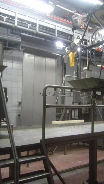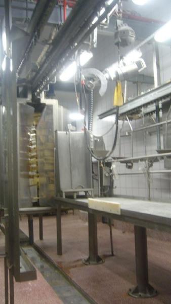 W drodze powrotnej tace oraz haki przechodzą przez myjkę tac i haków aby przejść proces mycia i sterylizacji. Konstrukcja przenośnika wykonana jest ze stali ocynkowanej a tace i haki wykonane są ze stali kwasoodpornej co zapewnia wysoką estetykę i higienę oraz długą żywotność. Wykonujemy przenośniki tacowe w liniach uboju trzody jak również w liniach uboju bydła.